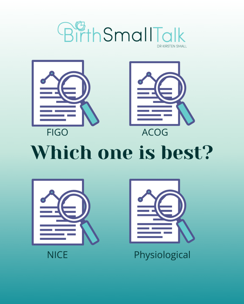 No one guideline performed universally well across all measures. The authors of the paper preferred the “Physiological” guideline. Unfortunately, the “Physiological” guideline also favours unnecessary intervention when the CTG is more often abnormal in the face of a normal pH level. The decision about which guideline to use will continue, I suspect, to relate to the history of specific settings (“we’ve always done it that way”) and professional allegiances (choosing to use the ACOG guideline in the UK is likely to get you referred to the regulator).