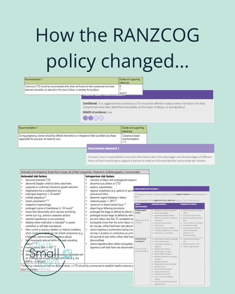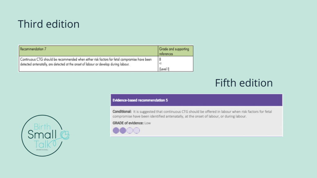 The language structure of the recommendation has also been softened. There is now a “suggestion” that CTG monitoring be “offered”, rather than being a recommendation.