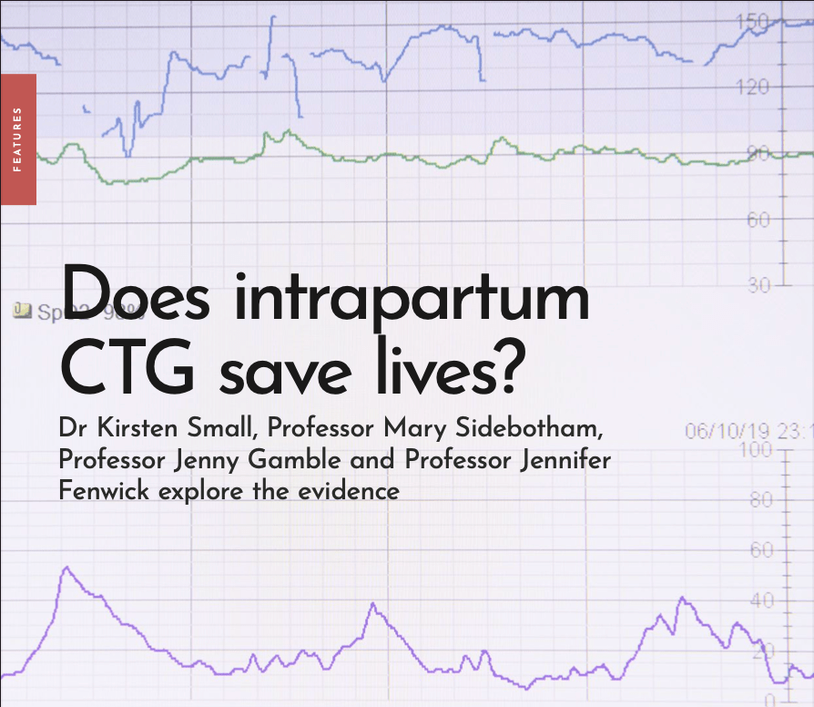 Small, K. A., Sidebotham, M., Gamble, J., & Fenwick, J. (2021). Does intrapartum CTG save lives? Midwifery Matters, Spring(168), 20 – 22. https://www.midwifery.org.uk/articles/midwifery-matters-spring-2021/